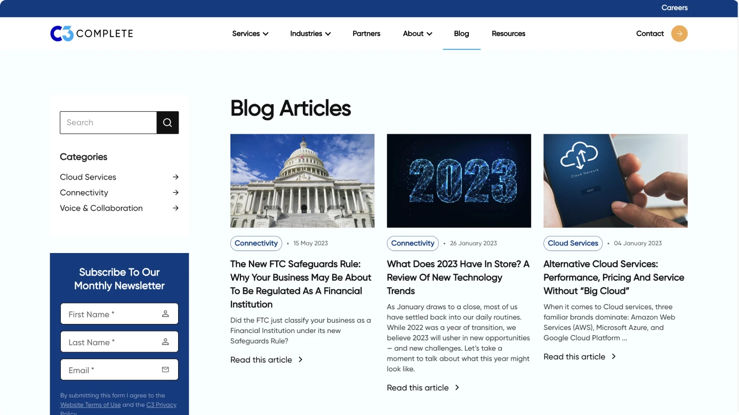 C3 Complete, an esteemed tech solutions company experiencing remarkable growth, sought our expertise to address multiple challenges. Beyond a website overhaul, they needed a complete rebranding and strategic marketing assistance to solidify their position as industry leaders.
