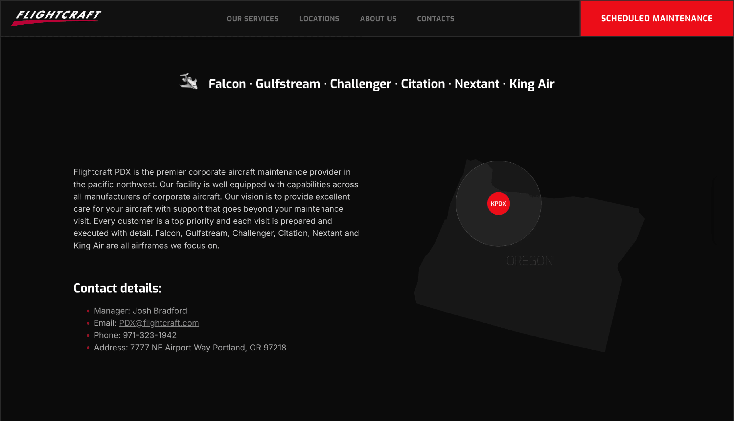 The previous Flightcraft website lacked a clear structure and did not properly highlight the full scope of maintenance and repair services provided across PDX and LNK. Critical information such as AOG (Aircraft on Ground) emergency support was difficult to find, and the site was not optimized for tablet use – a crucial need for pilots and technicians on the go.