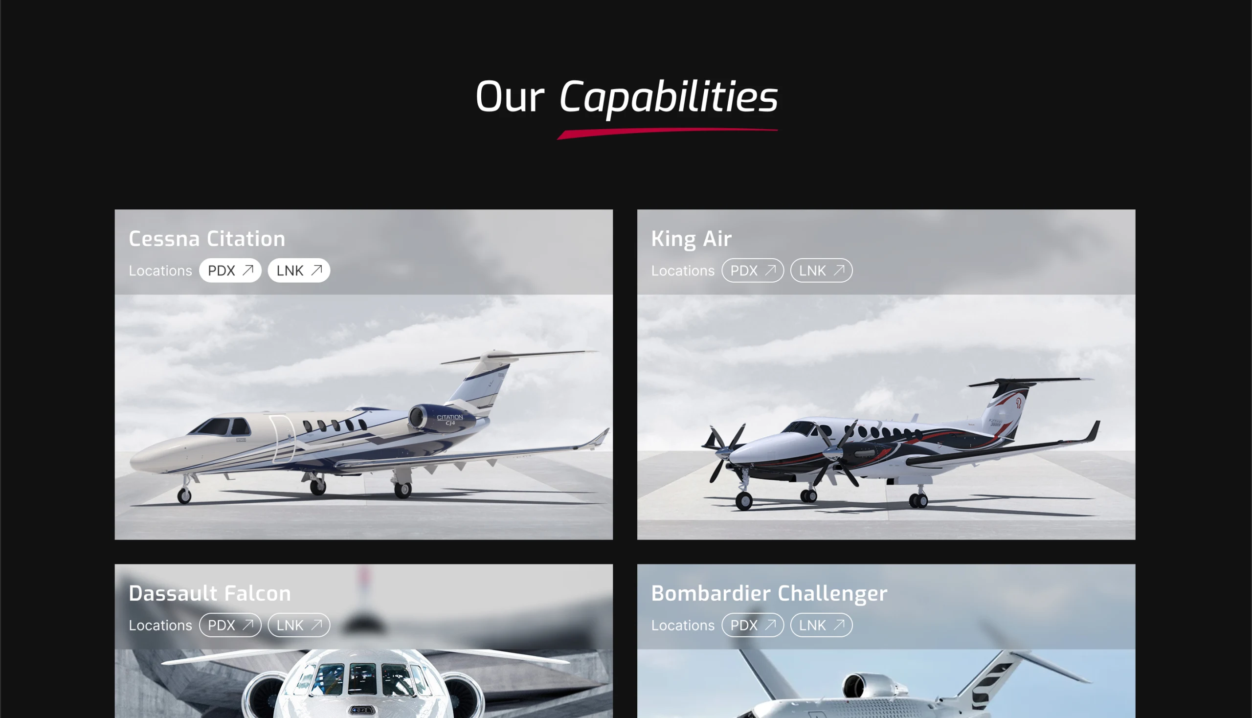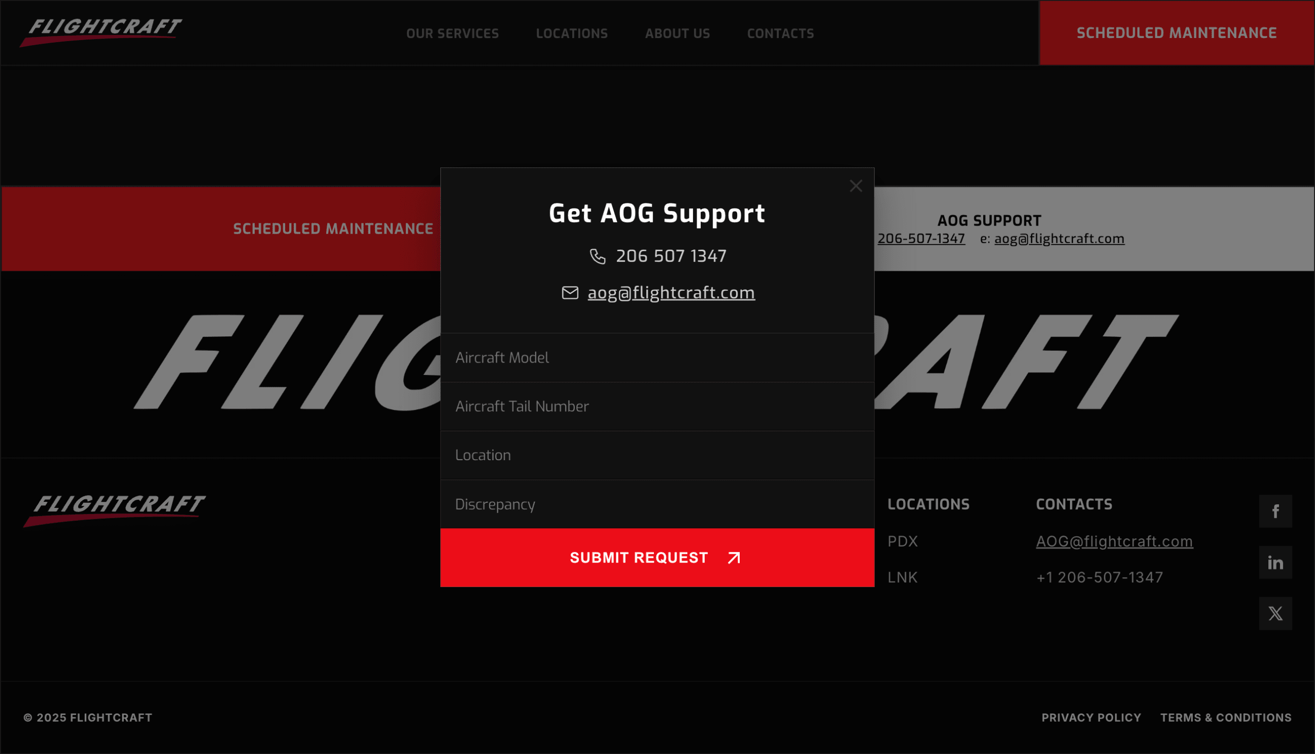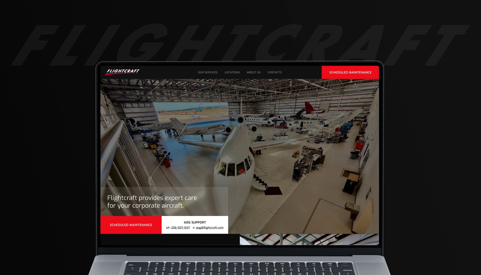 The previous Flightcraft website lacked a clear structure and did not properly highlight the full scope of maintenance and repair services provided across PDX and LNK. Critical information such as AOG (Aircraft on Ground) emergency support was difficult to find, and the site was not optimized for tablet use – a crucial need for pilots and technicians on the go.