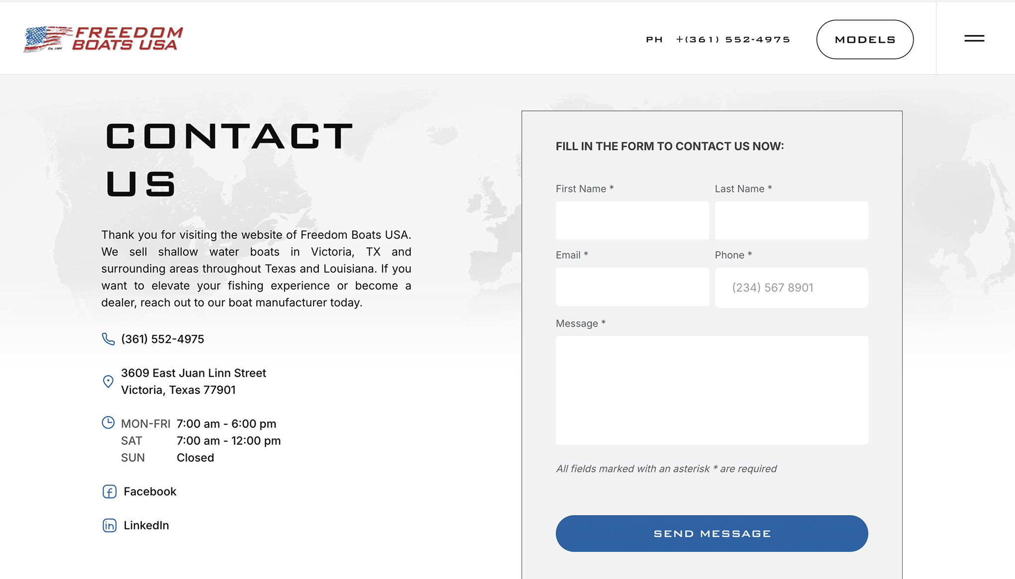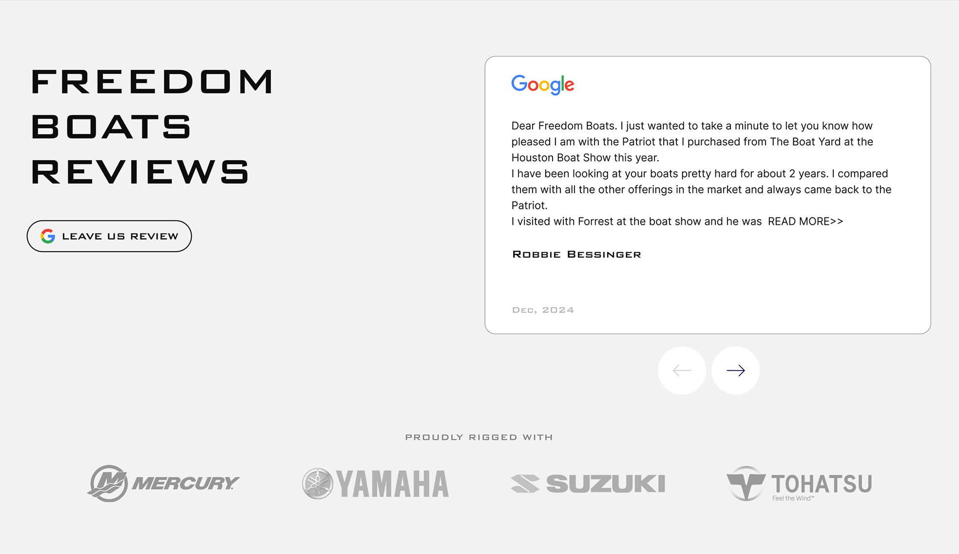 Freedom Boats is a professional boat manufacturer known for their beautifully crafted vessels built with 100% composite materials, making them rot-resistant and exceptionally durable. Their reputation for quality and innovation set the stage for a website that matched the same level of craftsmanship as their boats.