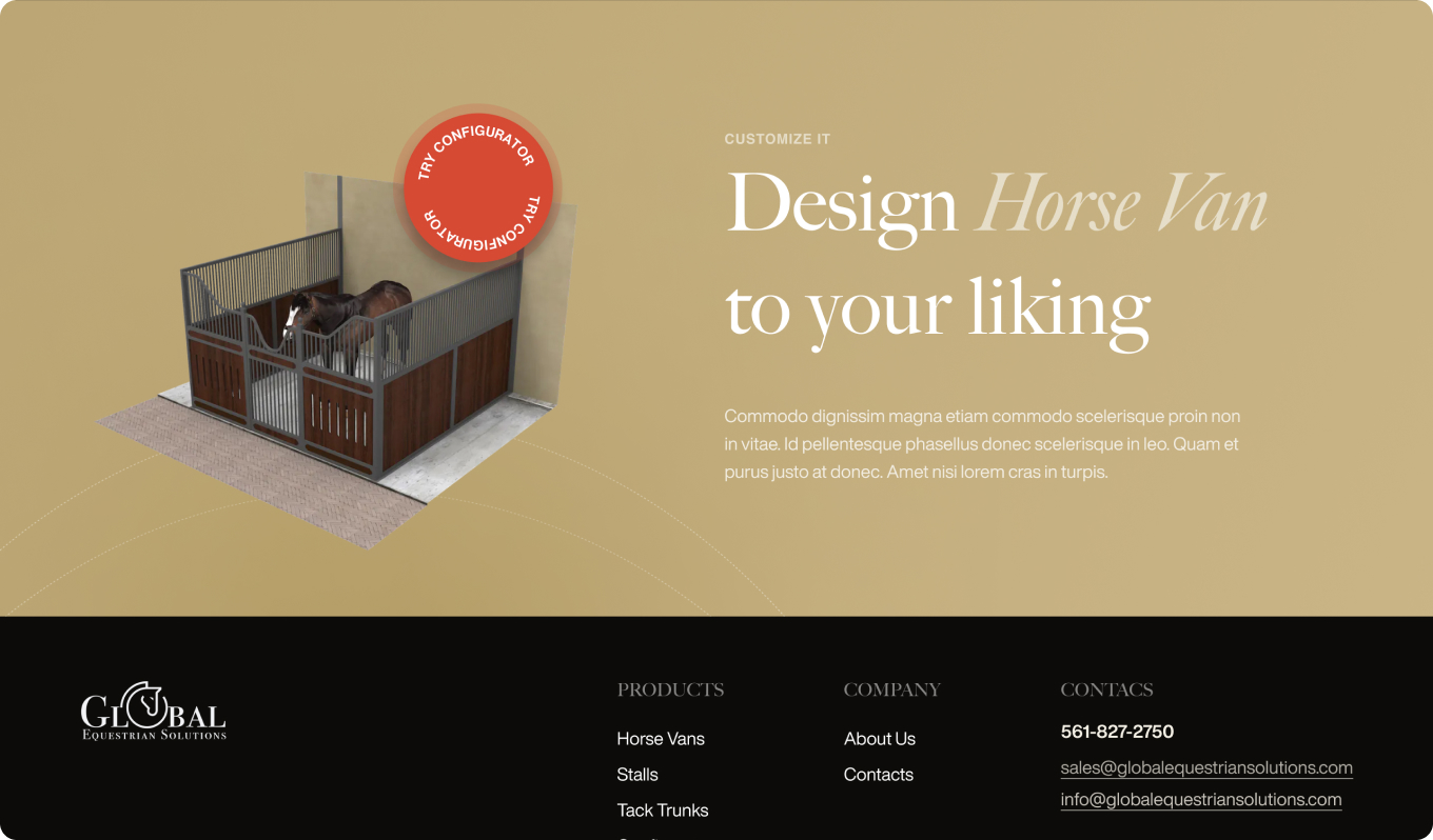 Their vision encompassed an impressive array of offerings, from luxury horse vans and mobile tack trunks to premium stalls and fencing. Seeking to promote their innovative products in a way that would captivate customers and allow for personalization, they turned to our digital solutions team for assistance.