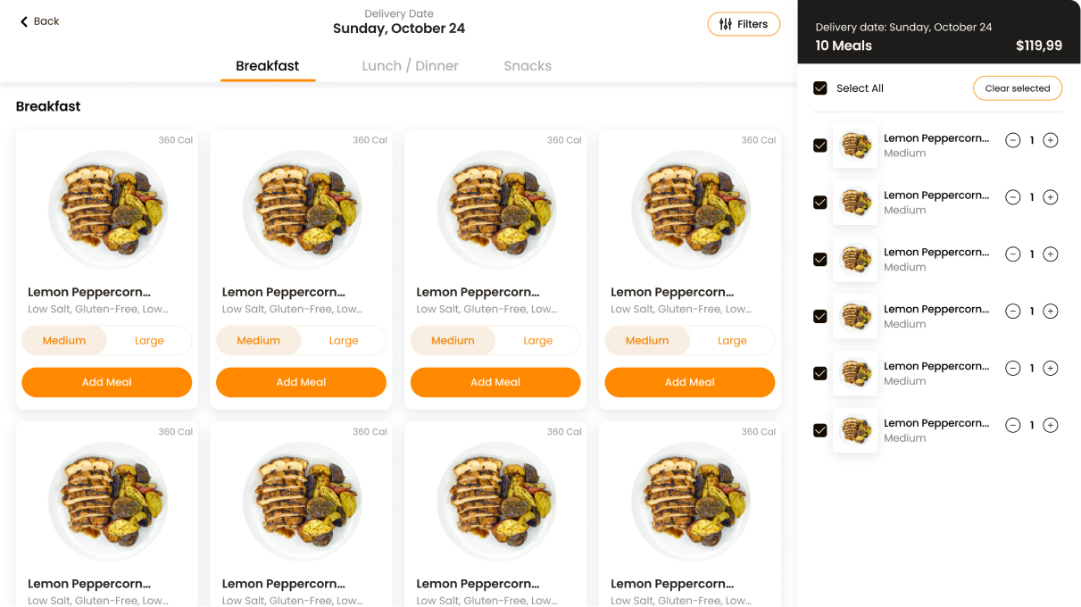 For customers, flexibility was our priority. Need 5 meals this week instead of 10? No problem. Want to toss in some add-on’s and change your shipping method, all from your phone? Easy.