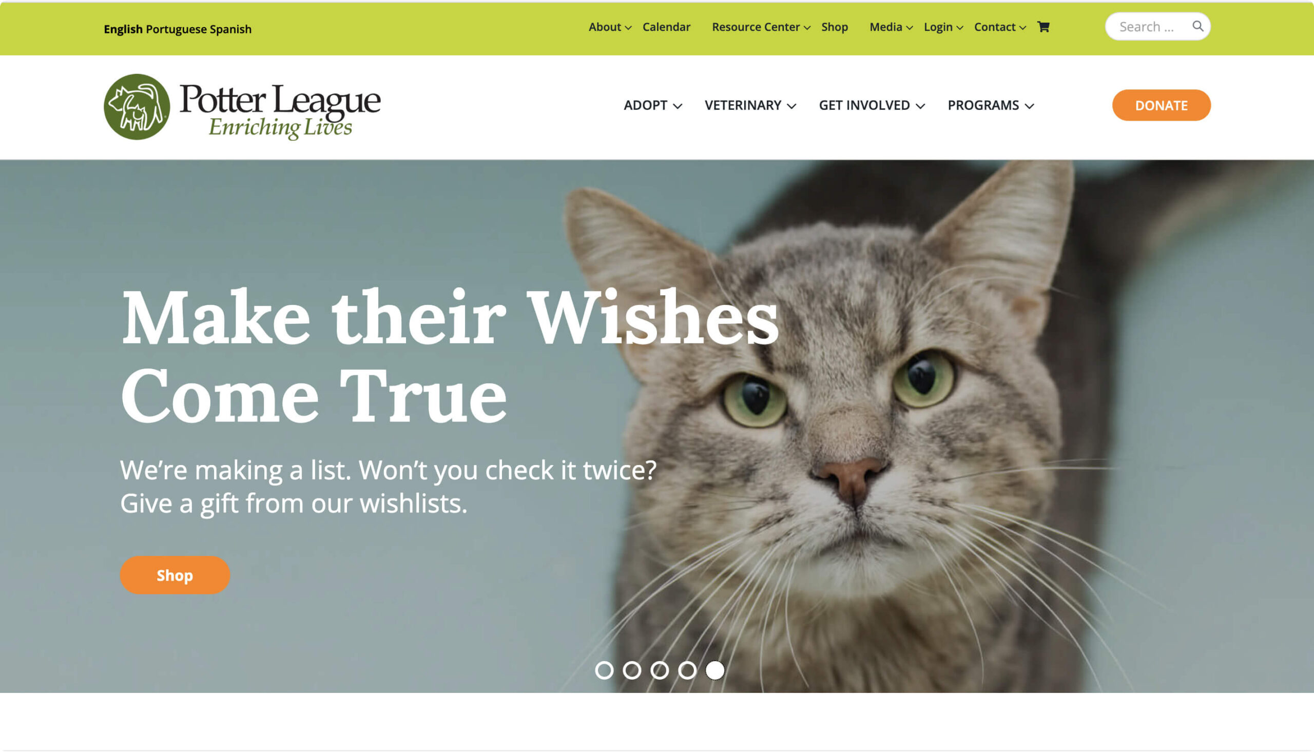 Adorable animals may not need design expertise, but a multifaceted organization is a different story: donations, well-curated events, and other community activities have kept operations purring along at Potter League for decades. Using a suite of plugins—including one we custom built—we helped ensure that users are never thrown off-site onto poorly branded third-party forms.