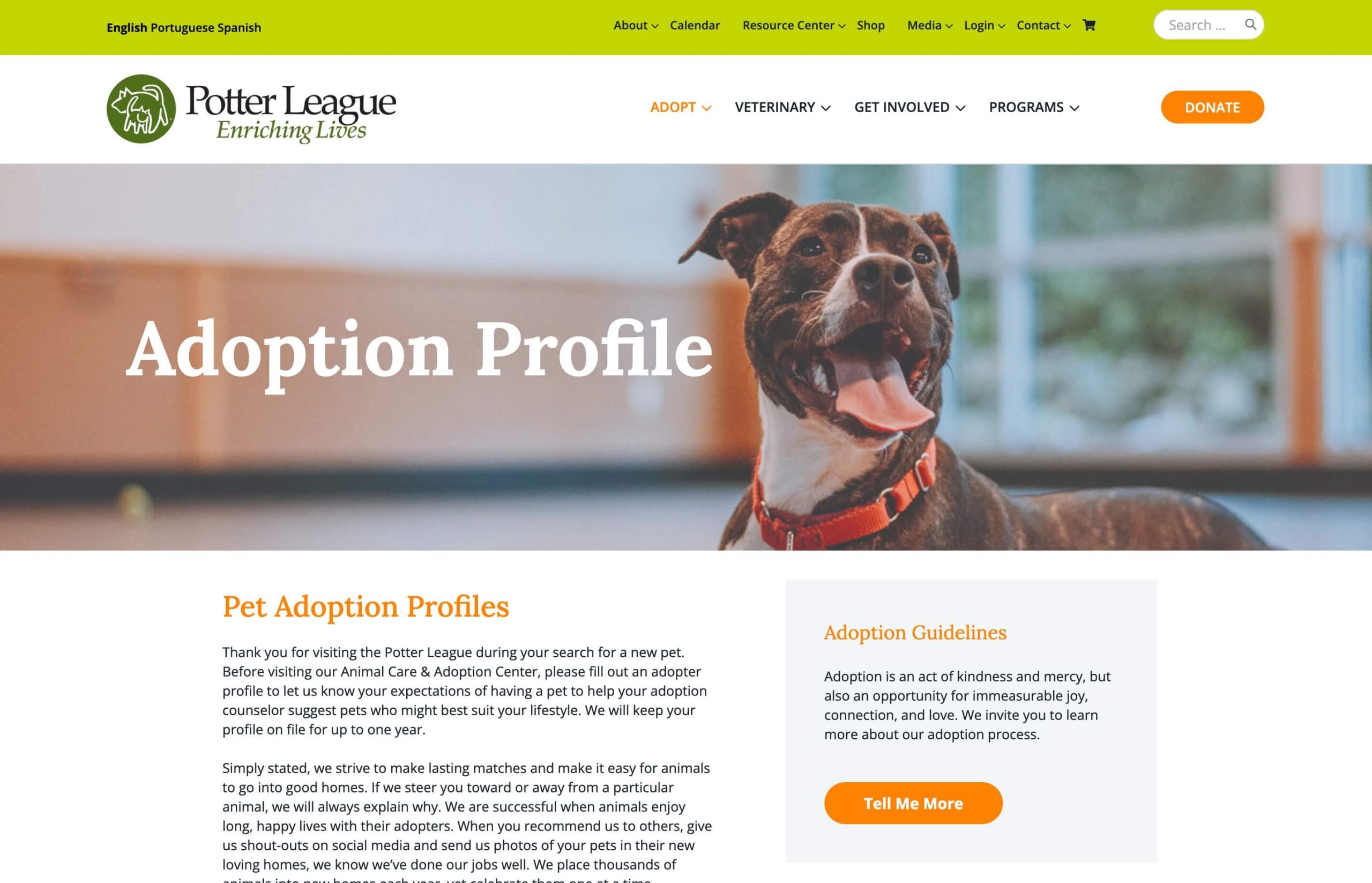 Like a great animal companion, Potter League’s new website isn’t meant to merely be admired, but experienced. With attention afforded up front to content management and the unique experiences of each audience, we fashioned a site where every dog (and cat, and rabbit) can have its day.