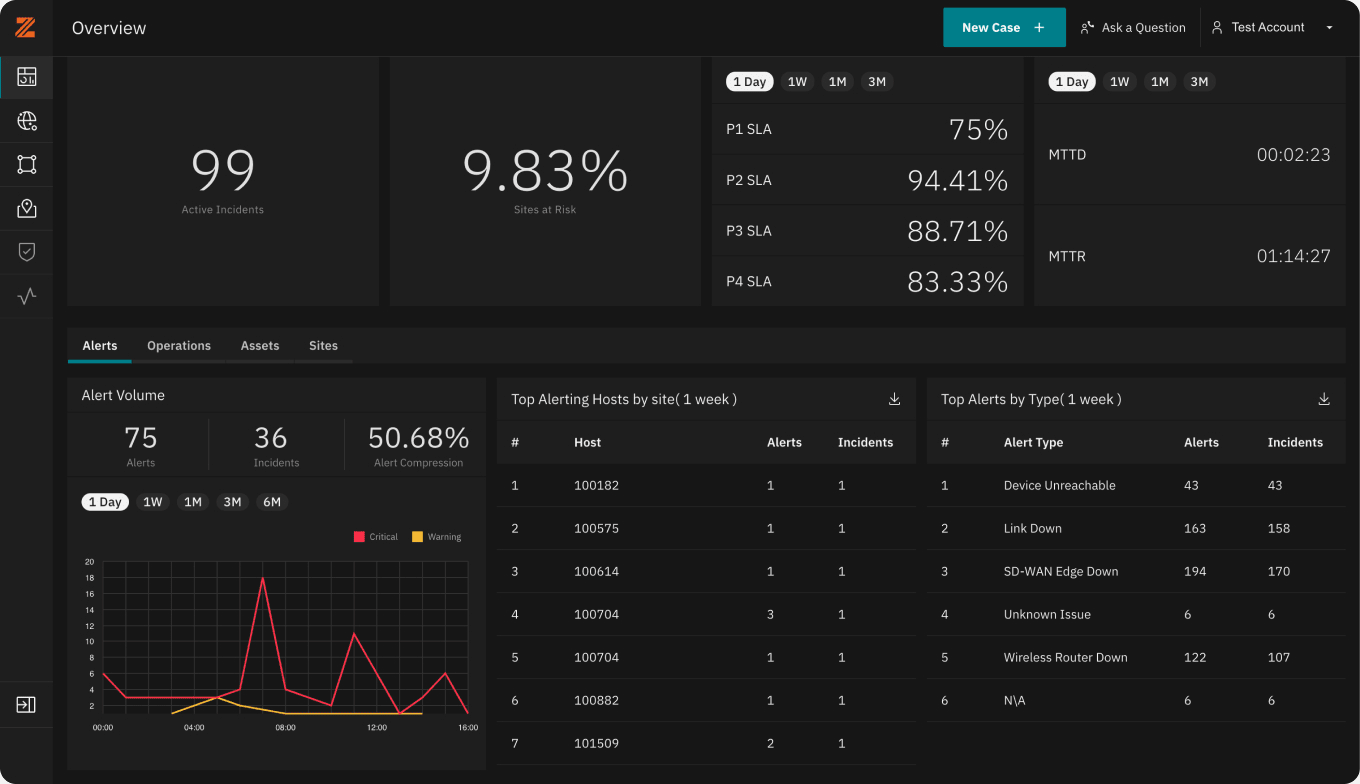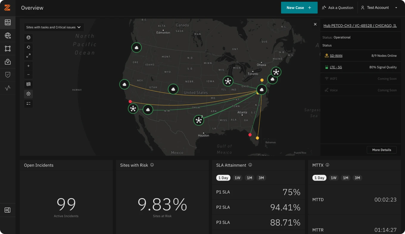 The Intelligent Network Platform provides monitored analytics and management, on top of a single-pane-of-glass portal. We pull in network inputs from 5 different data sources, more than any other, and provide effective management and visibility into next-generation services at the edge.