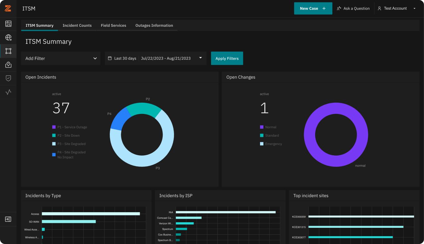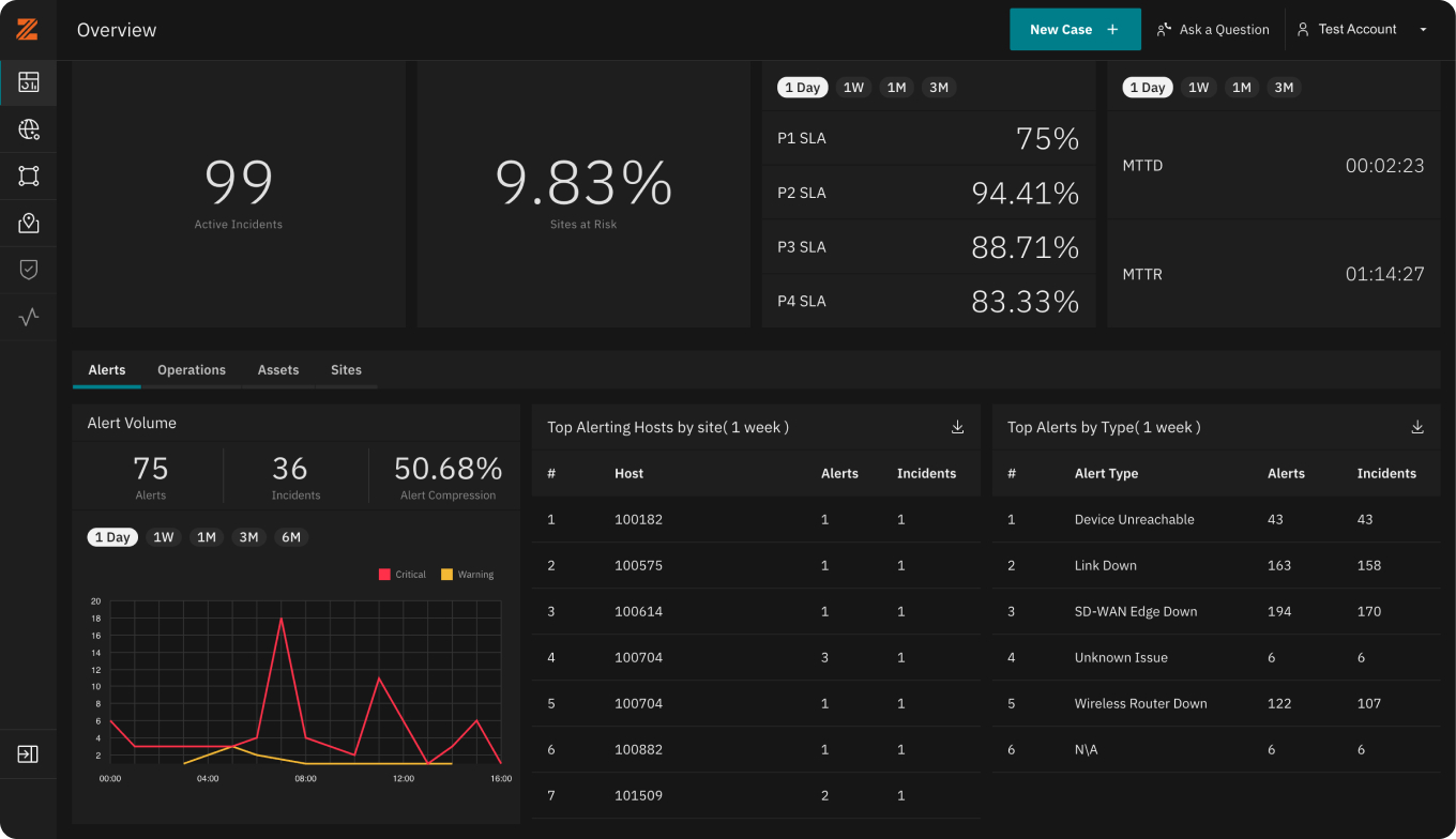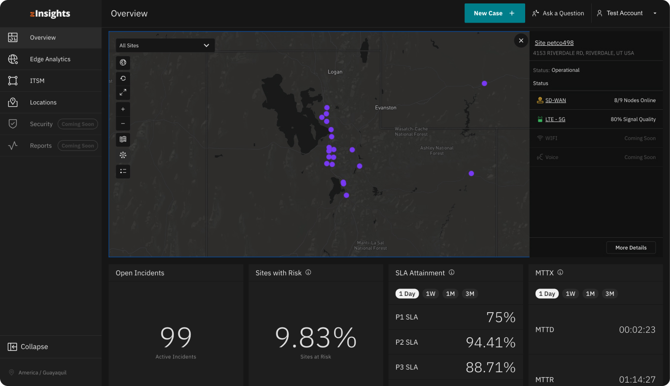 The Intelligent Network Platform provides monitored analytics and management, on top of a single-pane-of-glass portal. We pull in network inputs from 5 different data sources, more than any other, and provide effective management and visibility into next-generation services at the edge.